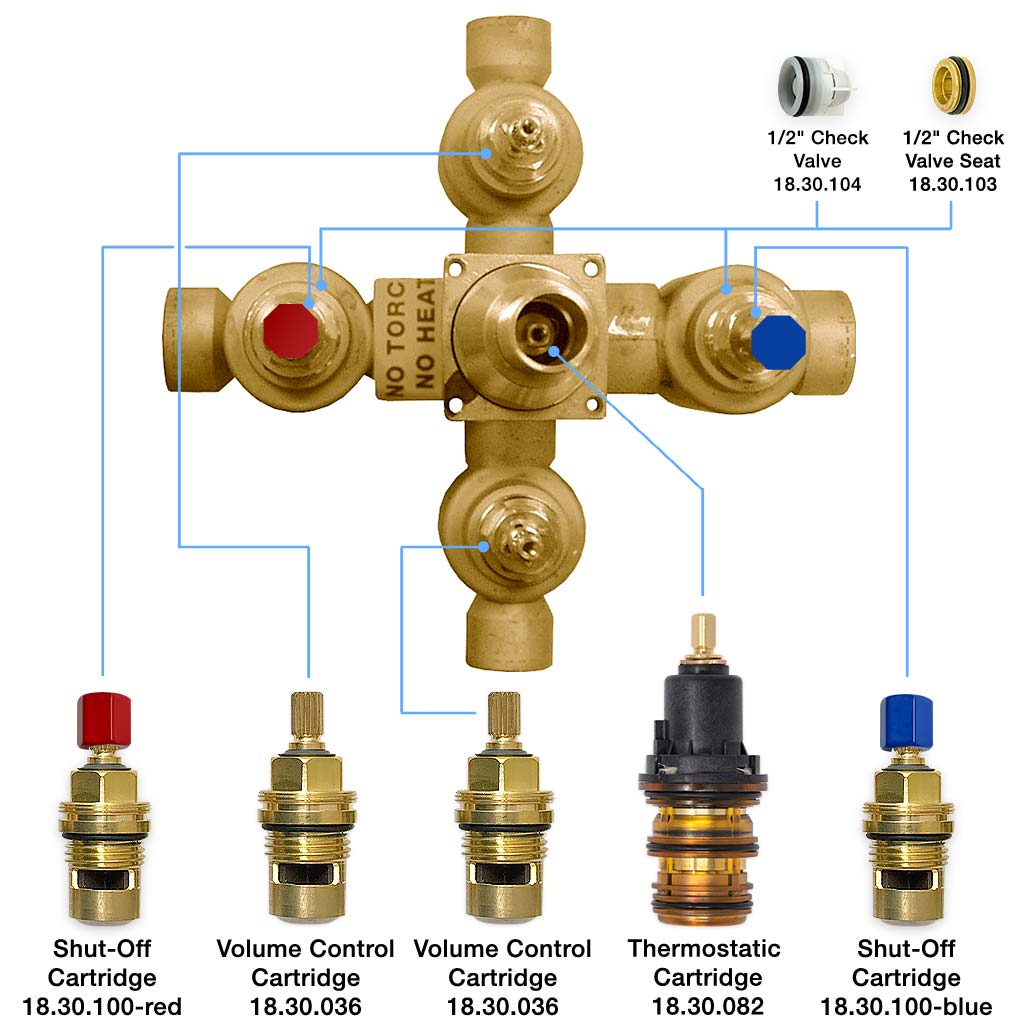 - Oneย Eurothermยฎ 1/2" Full-Flow Thermostatic Cartridge 18.30.082