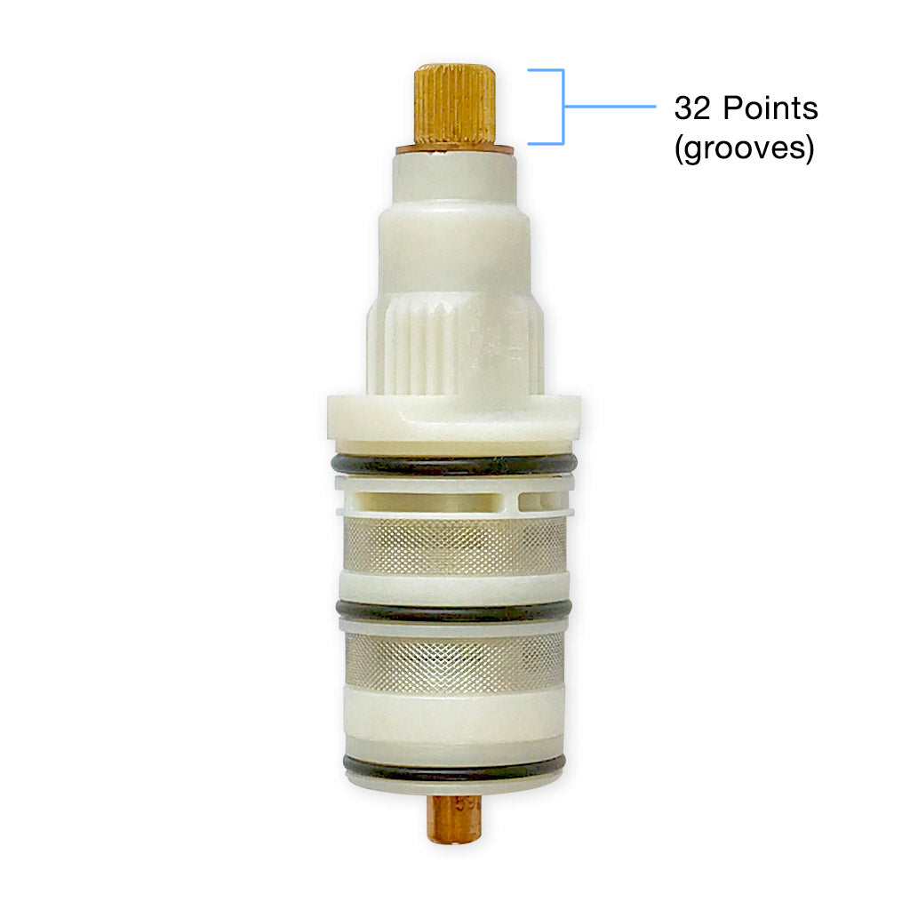 IMPORTANT There are two versions of this 1/2" thermostatic cartridge. One version has 20 points (ridges) at the top of the cartridge; the other has 32 points (ridges) at the top of the cartridge.