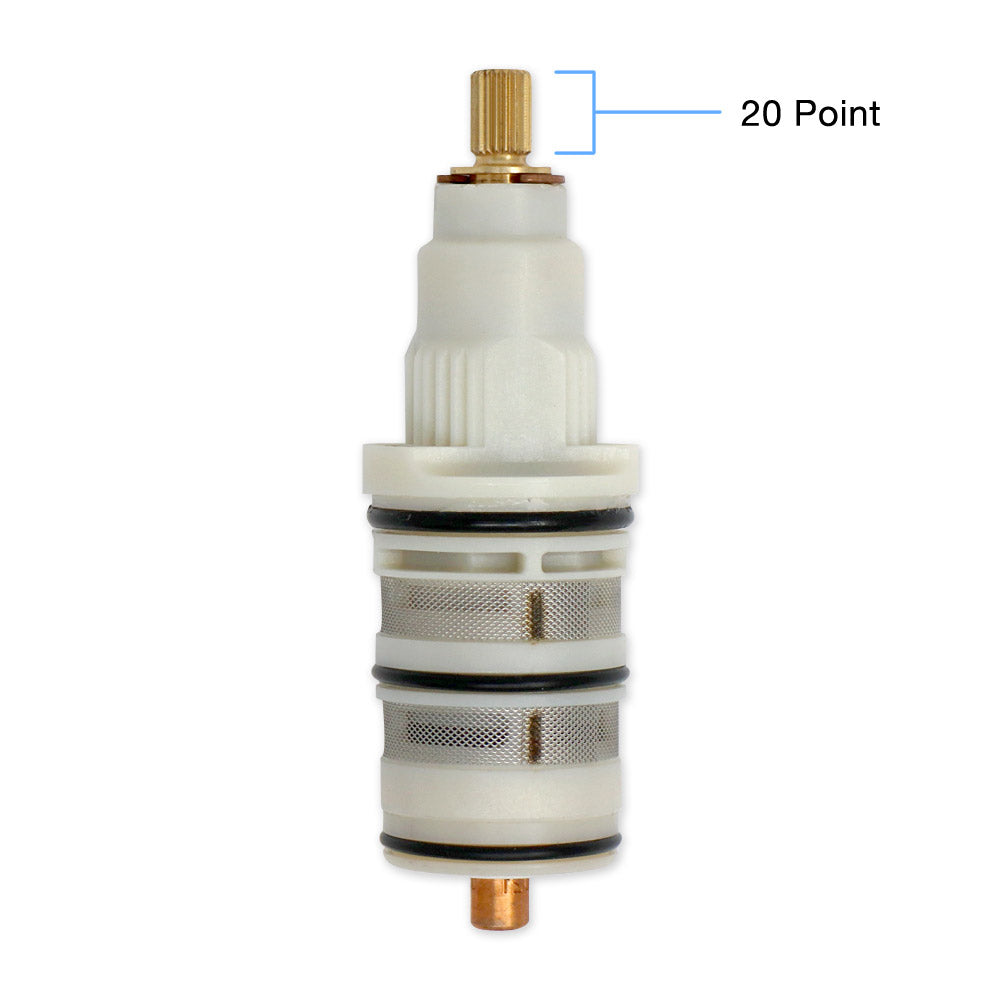 Remove the Temperature Control Handle and count the number of ridges on the brass tip of the thermostatic cartridge. If your existing cartridge has 20 ridges, order the 20-Point Version. If your existing cartridge has 32 ridges, order the 32-Point Version.