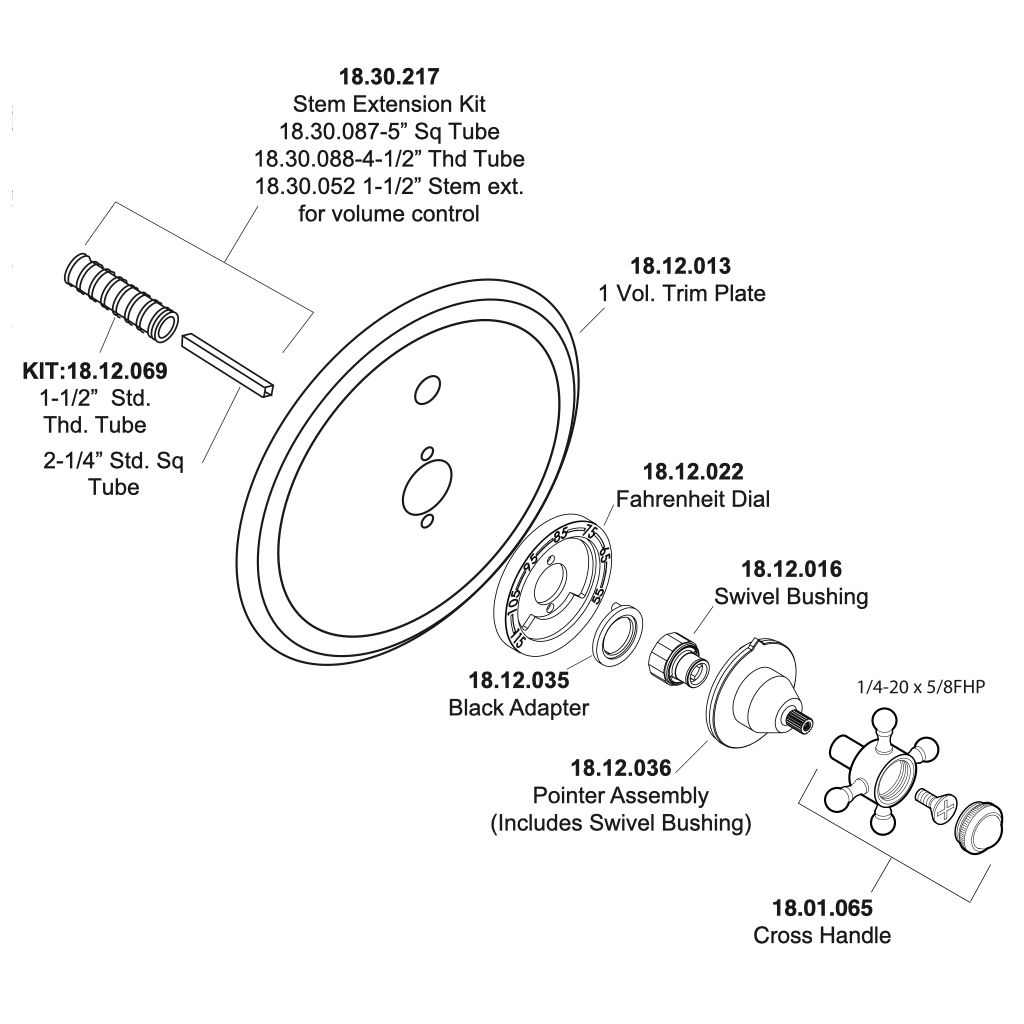 Trim for Sigma 300 Series 1/2" Thermostatic Shower Set with Saint Michel Handle and One Volume Control 1.005596.V1T