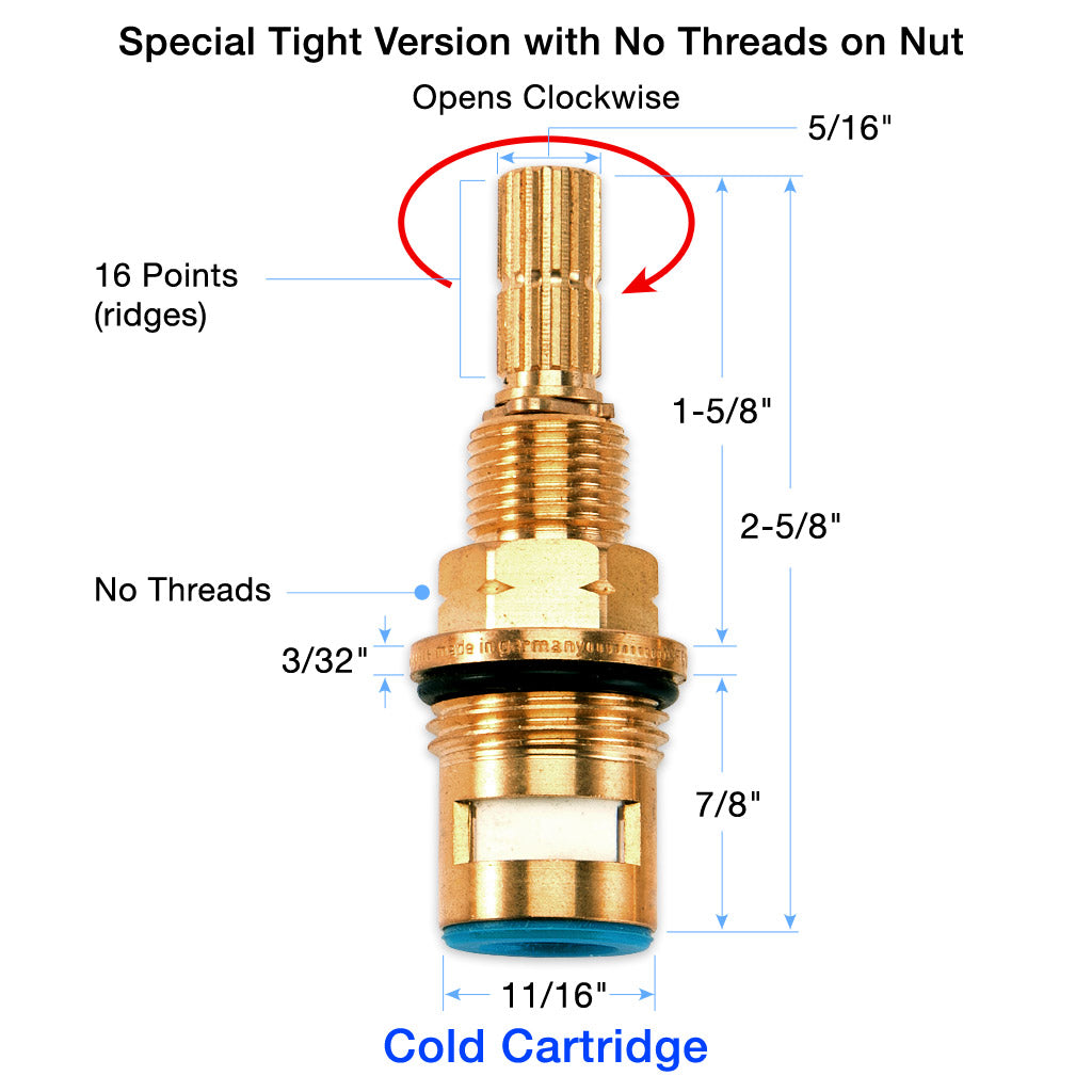 1/2" Quarter Turn Cold Cartridge 16 Point 18.30.029T