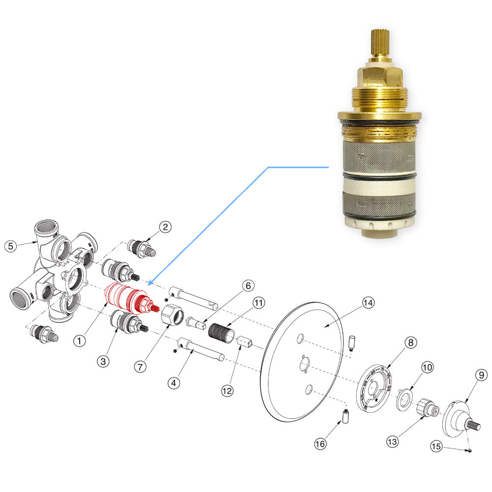 Genuine OEM thermostatic cartridge for right fit, performance, and reliability.